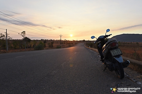 오늘 판티엣 지역의 일출 시간은 5시 10분입니다. 새벽 4시 30분에 일어나 오토바이 시동을 켜고 아무도 없는 도로를 혼자 신나게 달려갑니다. 그런데 길 중간 중간 너무나도 예쁜 풍경들이 보여, 계속 세워 사진도 찍고 풍경 감상하느라............. 도로 중간에서 일출을 만났어요! 이런....