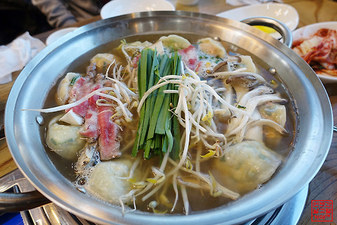 세숫대야같이 굉장히 큰 그릇에 칼국수와 수제비 1인분씩 함께 담아 나옵니다. 물총조개 1인분을 별도로 추가해서 속에는 조개가 아주 바글바글 많이도 들어 있습니다.