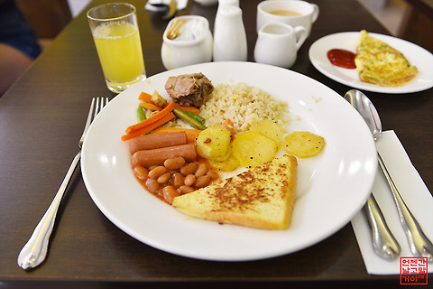 이건 폭찹. 꼭 생긴 건 탕수육 같이 생겼는데.... 생긴 데로 '부먹' 탕수육 맛과 비슷해요. 돼지고기를 튀긴 후 새콤달콤한 소스에 버무린 음식입니다. 케찹 맛 나는 탕수육과 아주 흡사해요. 그나저나 저 스뎅(?) 접시 맘에 드네요. ㅎㅎㅎ