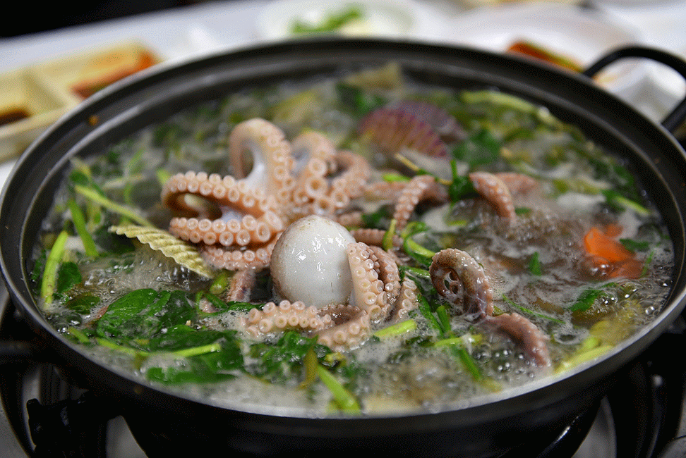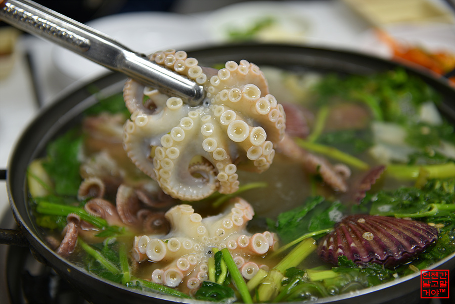 주꾸미들아 미안... 살아 있는 걸 넣으니 오글대며 금세 익어요. 옆에 있던 충청도 아저씨가 "오래 끓일 필요 없슈. 자빠지면 그냥 먹음 대유" 그러십니다. ㅎㅎㅎ