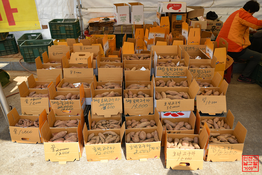 축제장 입구로 들어서면 처음 골목은 서천 농수산물과 군것질 먹거리 파는 곳이 나옵니다. 때깔 좋은 호박고구마 힘닿는 데까지 업어오고 싶지만 오늘은 차가 멀리 있는 관계로 참는다... ^^*