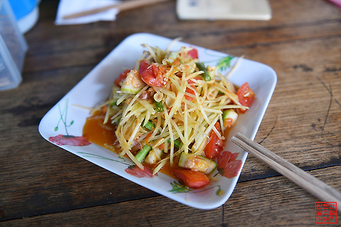 여러 꼬치 종류별로 사면 함께 먹을 야채와 소스도 별도로 담아줍니다. 보통 무삥 파는 곳에선 찹쌀밥도 같이 파는데 하나에 5밧 정도 합니다.