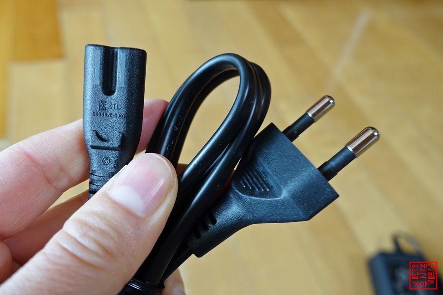전원 케이블 중 '한국전기전자안전인증'을 받은 KC마크가 있는 것을 아답터에 끼워 들으시면 되고요.