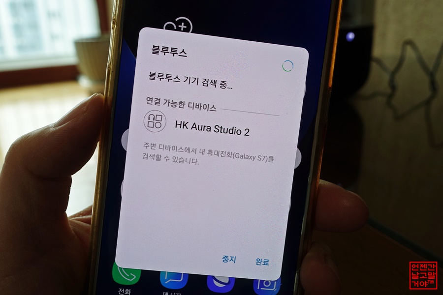 그리고 핸드폰의 블루투스 버튼을 누르면 둘이 알아서 서로를 찾아(페어링) 연결합니다.