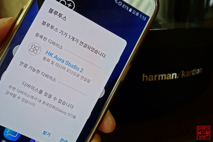 그리고 핸드폰의 블루투스 버튼을 누르면 둘이 알아서 서로를 찾아(페어링) 연결합니다.