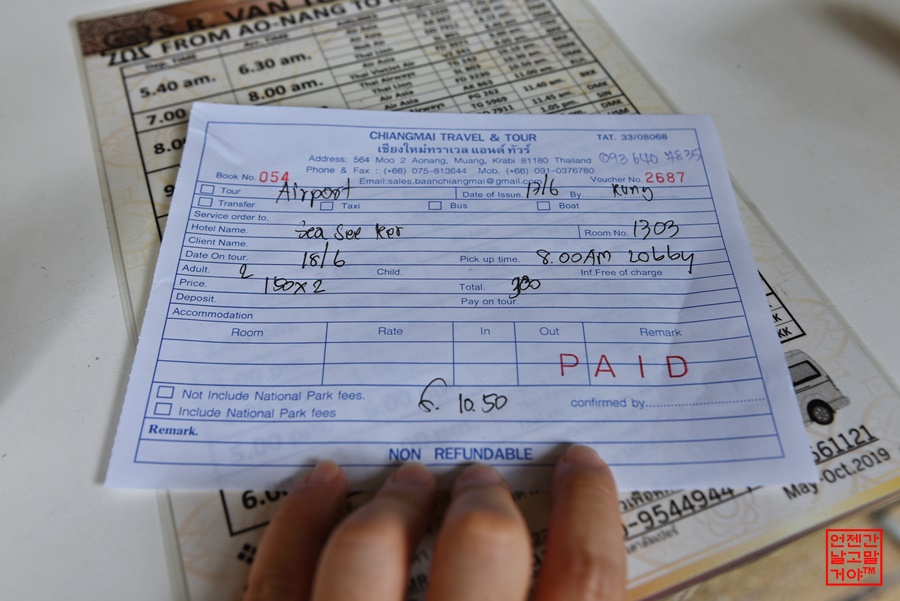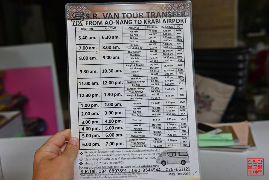 끄라비 공항에서 이륙하는 비행기 스케줄에 맞춰 미니밴 스케줄이 정해져 있습니다.