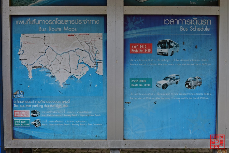 아오낭의 모든 여행사에서 제공하는 미니밴은 가격(1인당 150밧), 시간표는 동일합니다.