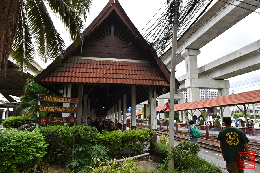 돈므앙공항에 내려서 바로 밖으로 나가면 앞에 기차역이 있습니다.