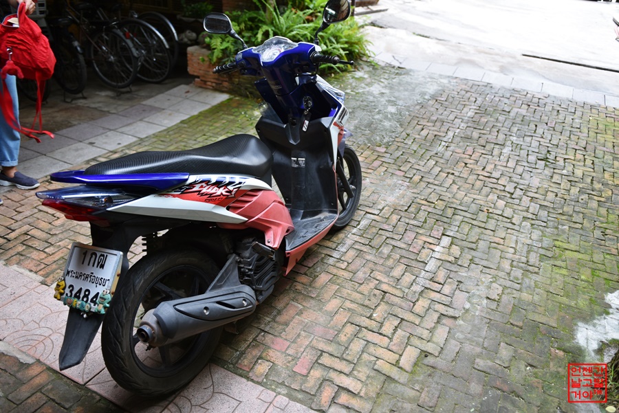 직원에게 부탁하니 대여업소에서 직접 오토바이를 가져다 줬습니다. (1시간 250밧)