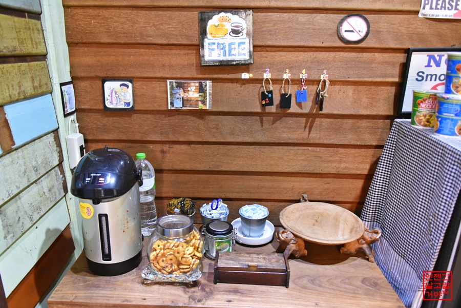 낮에는 티와 커피, 과자등을 무료 제공하고요.