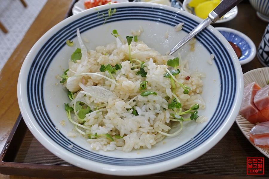 밥은 단짠하게 양념이 되어 있고 날치알이 톡톡 씹혀서 밥맛 먹어도 맛있습니다.