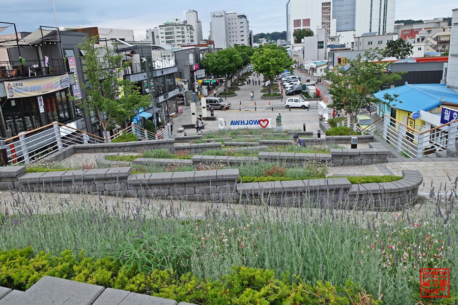 꽃계단길을 다 올라와서 보면 월화거리의 전경이 보입니다.