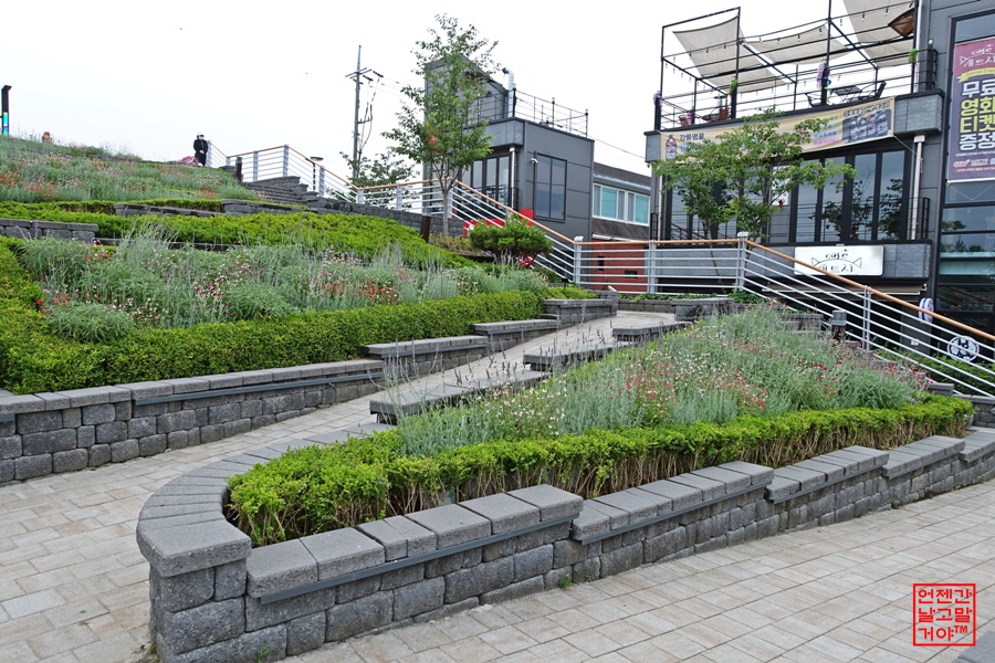 꽃계단길을 다 올라와서 보면 월화거리의 전경이 보입니다.
