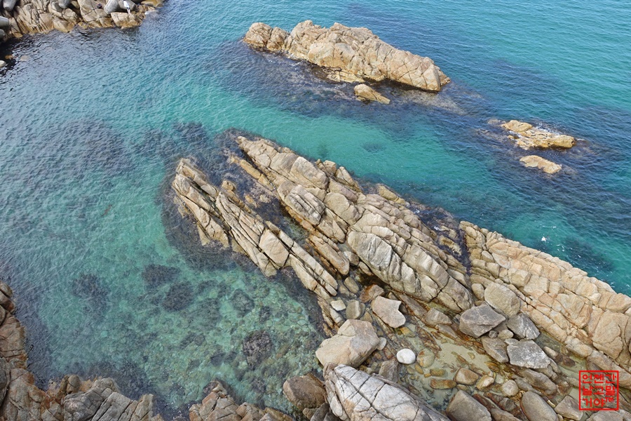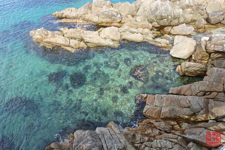 전망대 위에서 내려다 봐야지만 보이는 바다 속의 맑음이에요.