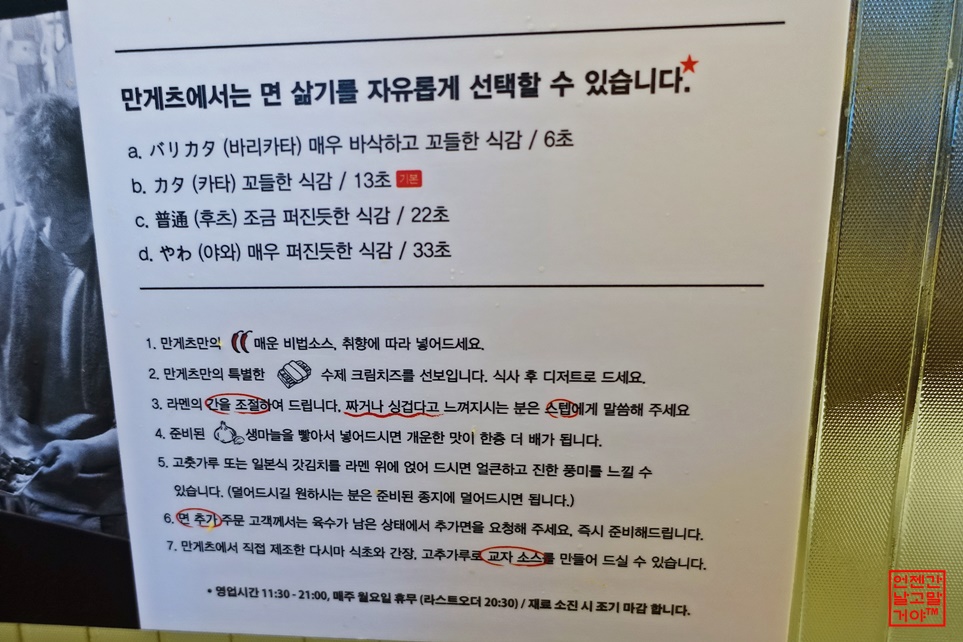 처음에 주문할때 직원이 라면의 삶기를 물어봅니다.