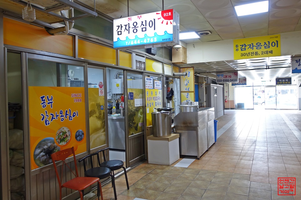 동부감자옹심이는 강릉 시내 동부시장 상가안에 위치해있습니다.