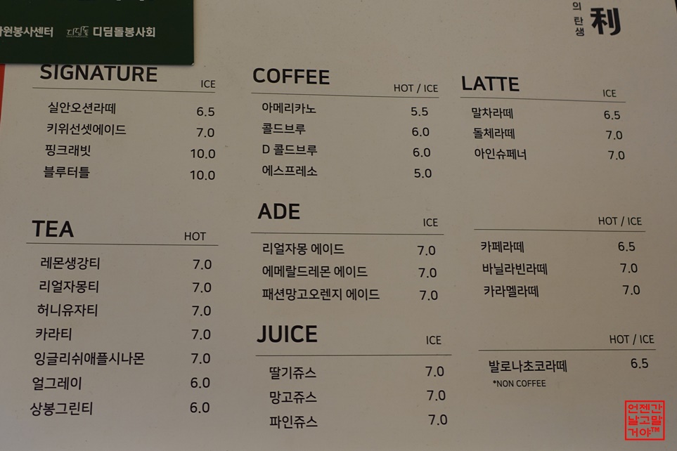 음료 종류가 왠만한 것은 다 있다 싶으면서도 자세히 보면 없는 듯~ 해요.