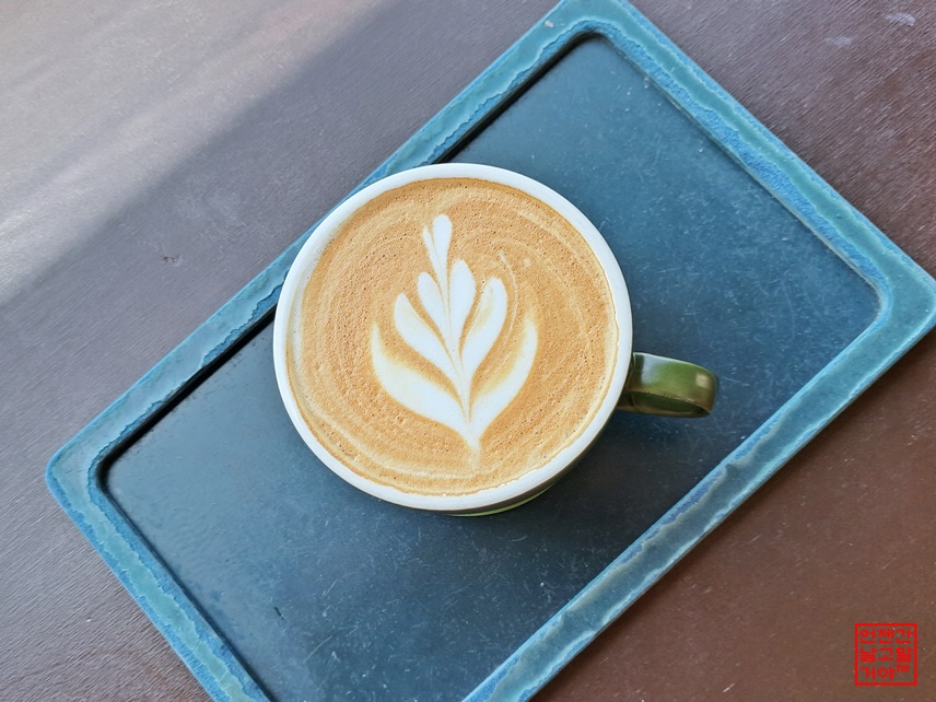 구석 구석 카페를 구경하고 오니 '카페라떼'가 나왔습니다.