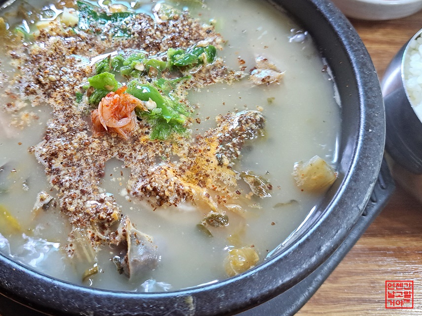 아침에 흥정 계곡에 시리도록 발을 담그고 와서 뜨끈한 국물이 땡기도 했고.