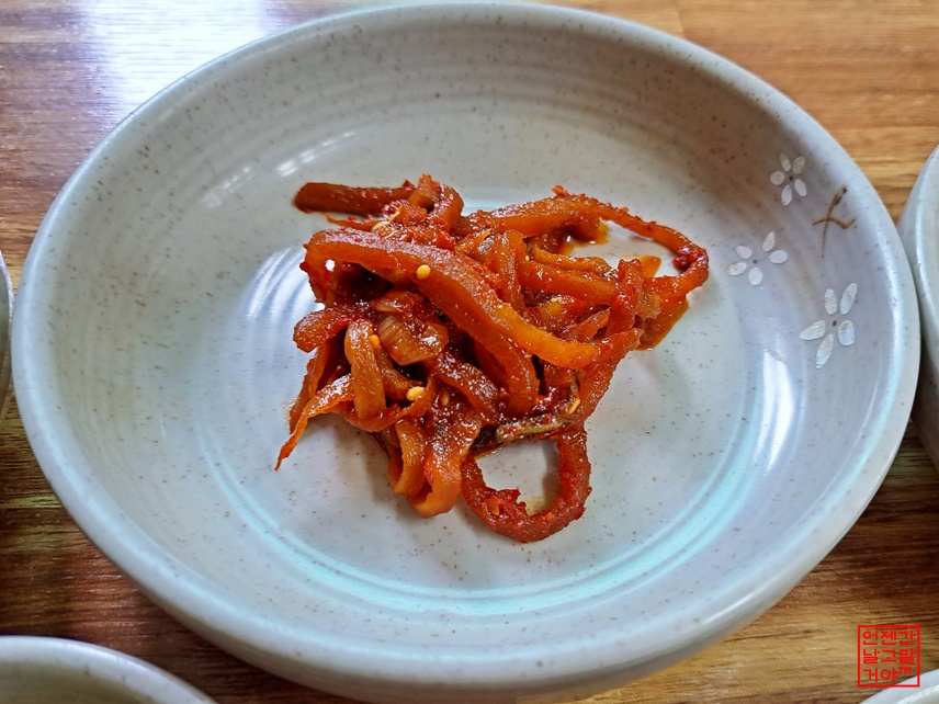 무를 숙성시켜 식감은 아삭하지 않고 매콤 짭조름해요.