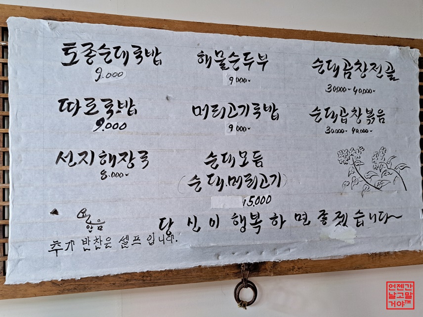 순댓국 못 드시는 부분들을 위해 해물 순두보, 머리고기국밥... 술안주인 곱창요리까지 다양합니다.