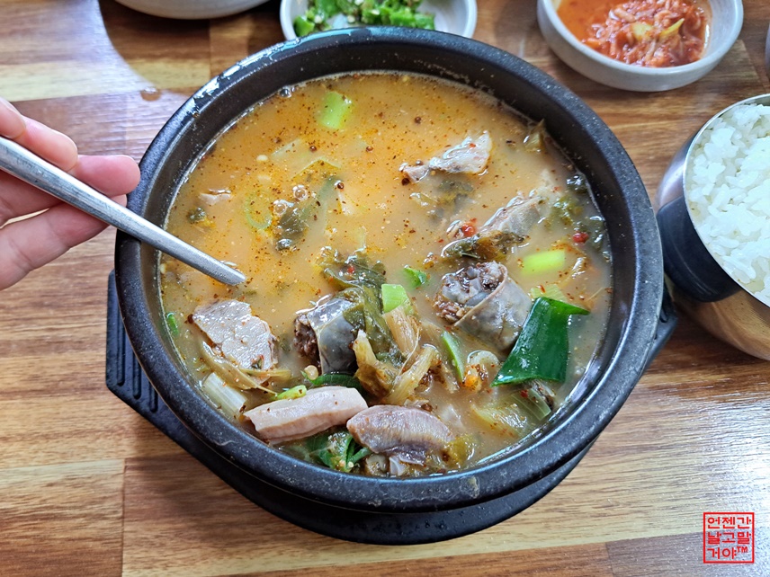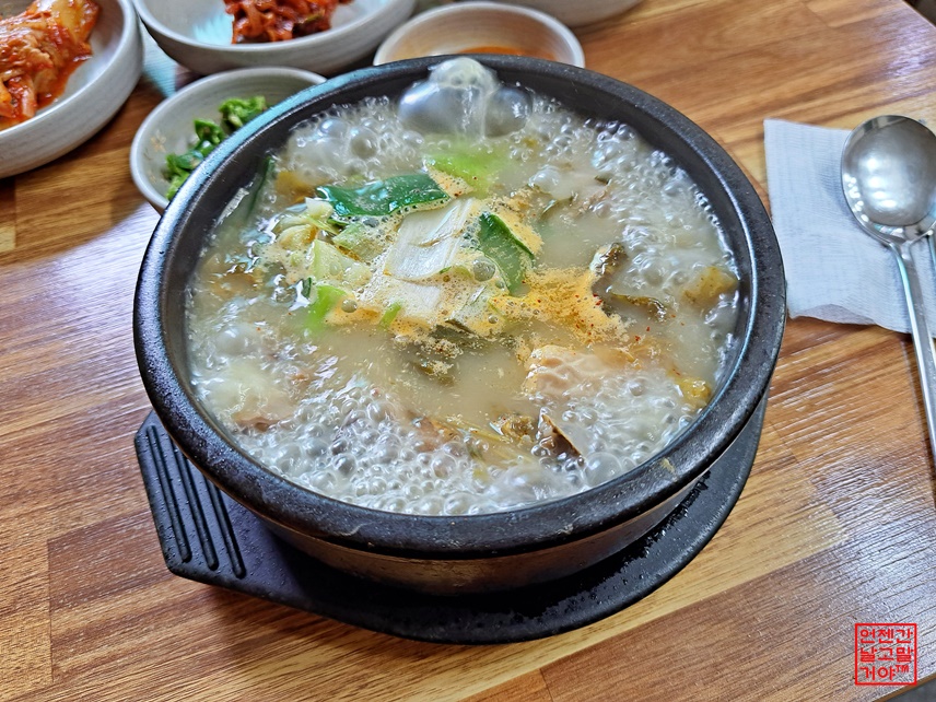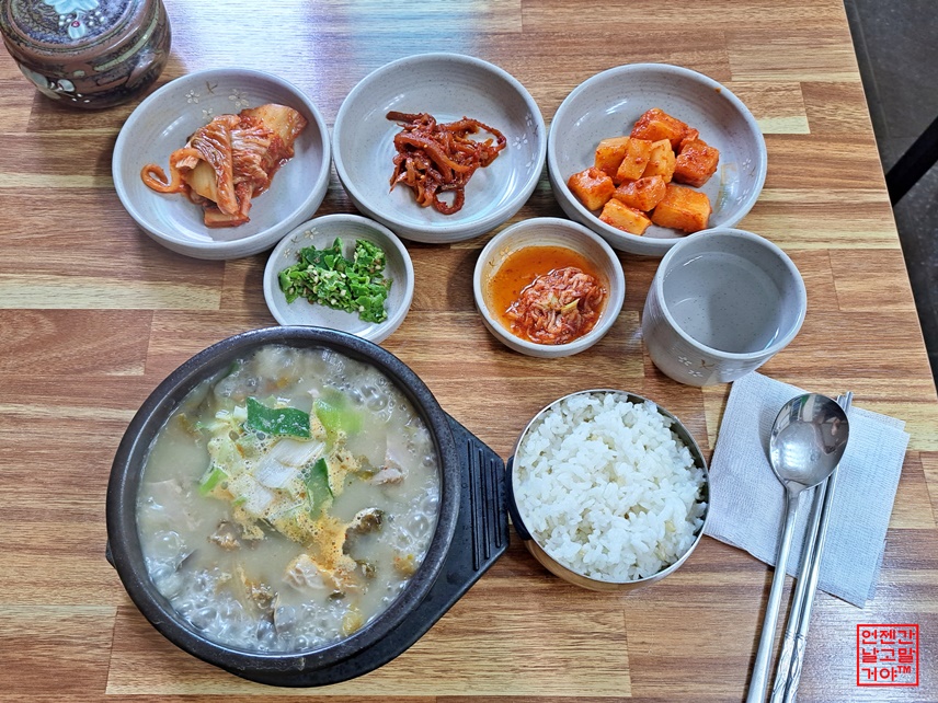 아침에 흥정 계곡에 시리도록 발을 담그고 와서 뜨끈한 국물이 땡기도 했고.
