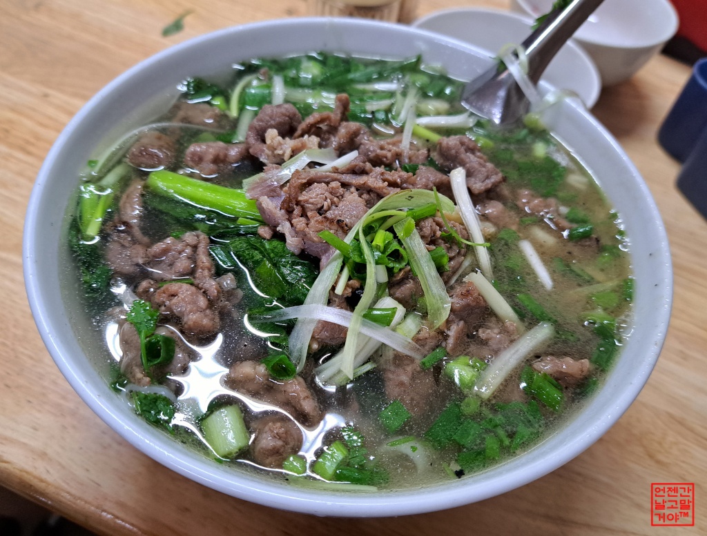 1월의 하노이는 추운 날씨라 뜨끈한 국물 쌀국수를 주문했습니다.