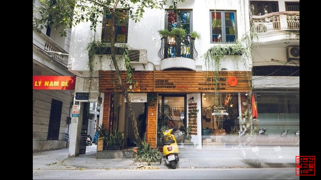 1층에 HC Leather Shop이라는 가죽용품점이 있는 건물입니다.