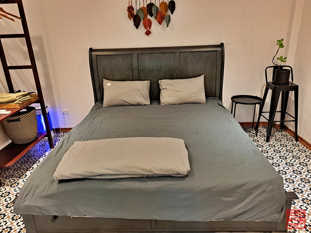 단단한 쿠션의 퀸 사이즈 침대가 있고요.