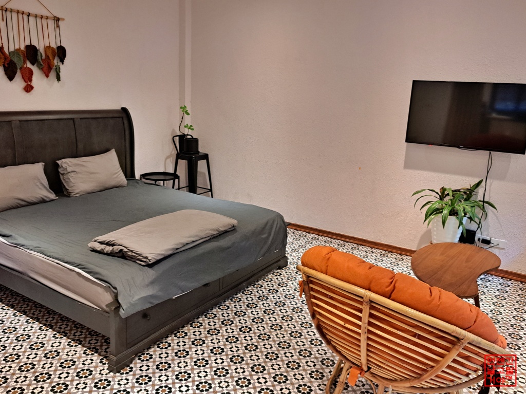 킹사이즈 침대와 거실,주방, 화장실이 있습니다.