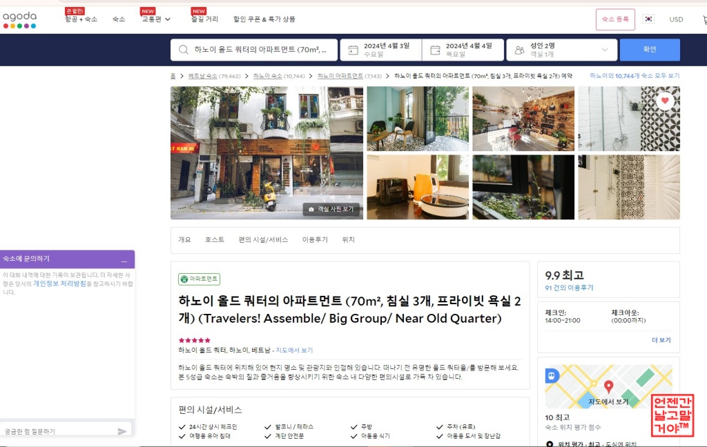 airbnb에도 같은 집이 나와 있었는데 아고다홈이 더 저렴하게 예약할 수 있었습니다.