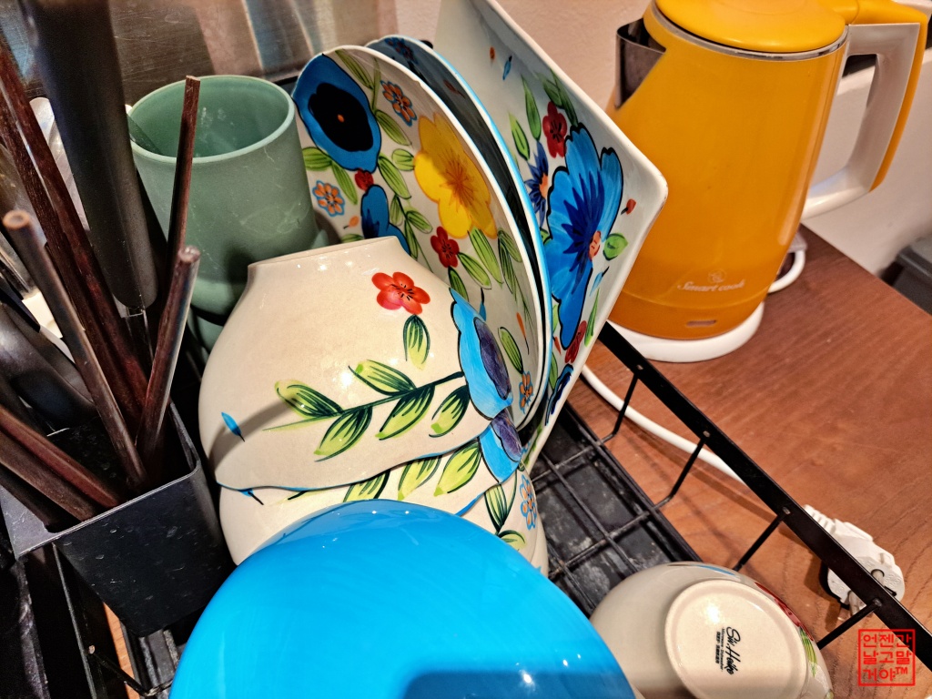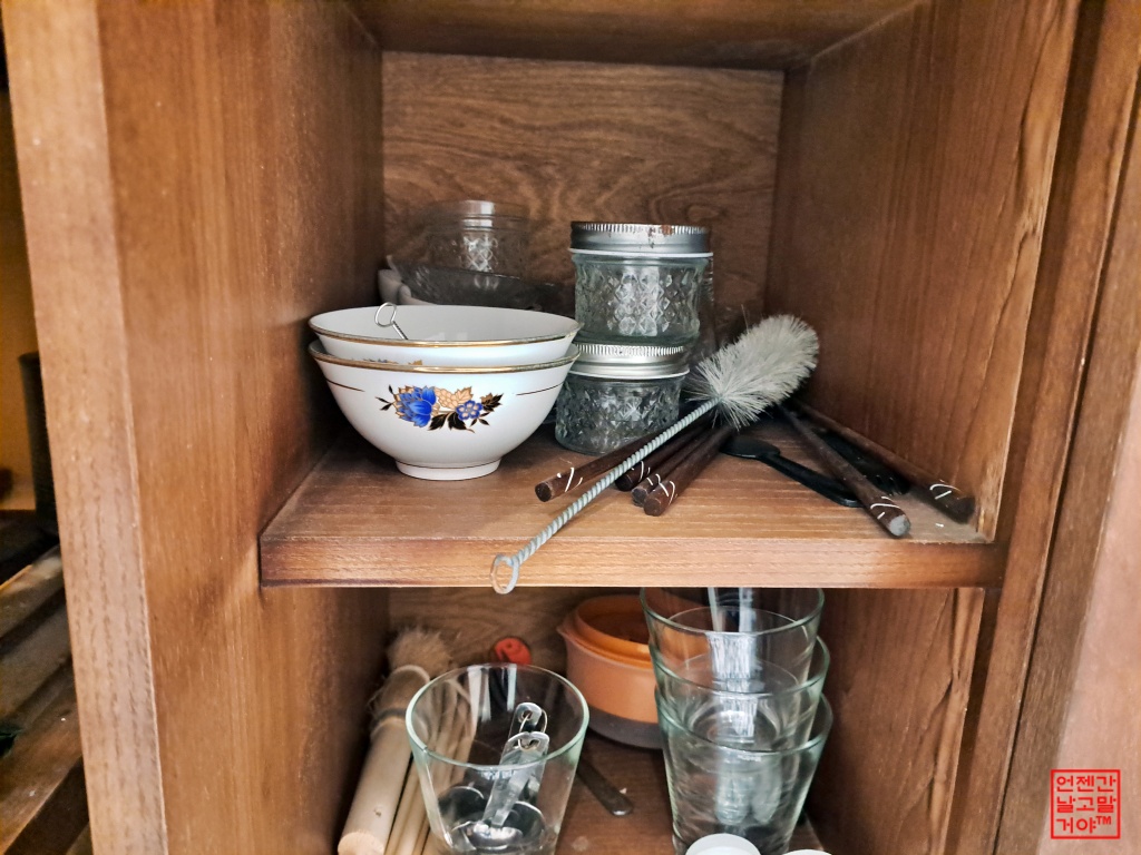 주방에는 냉장고는 물론 요리도구, 그릇,차가 있었습니다.