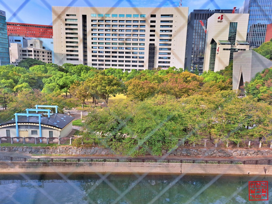 앞에 건물이 있긴한데 가운데 하타카 강과 공원이 있어서 꽤 거리감이 있었고요.