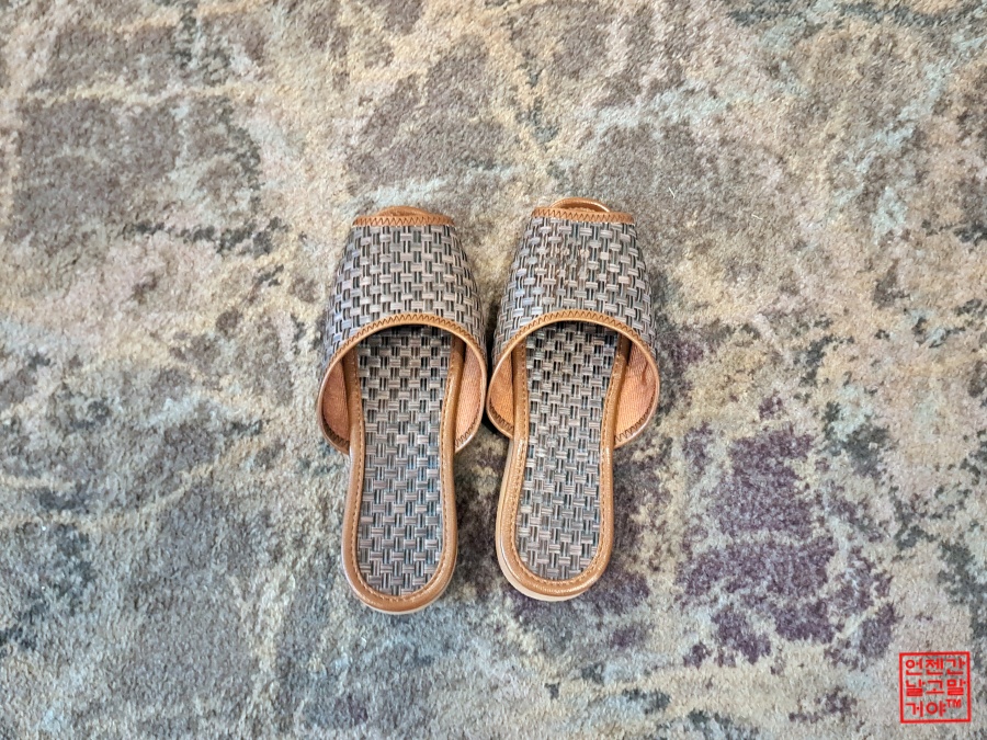 룸 안에서는 외부 신발을 신을 수 없어서 입구에서 슬리퍼로 갈아 신어야합니다.