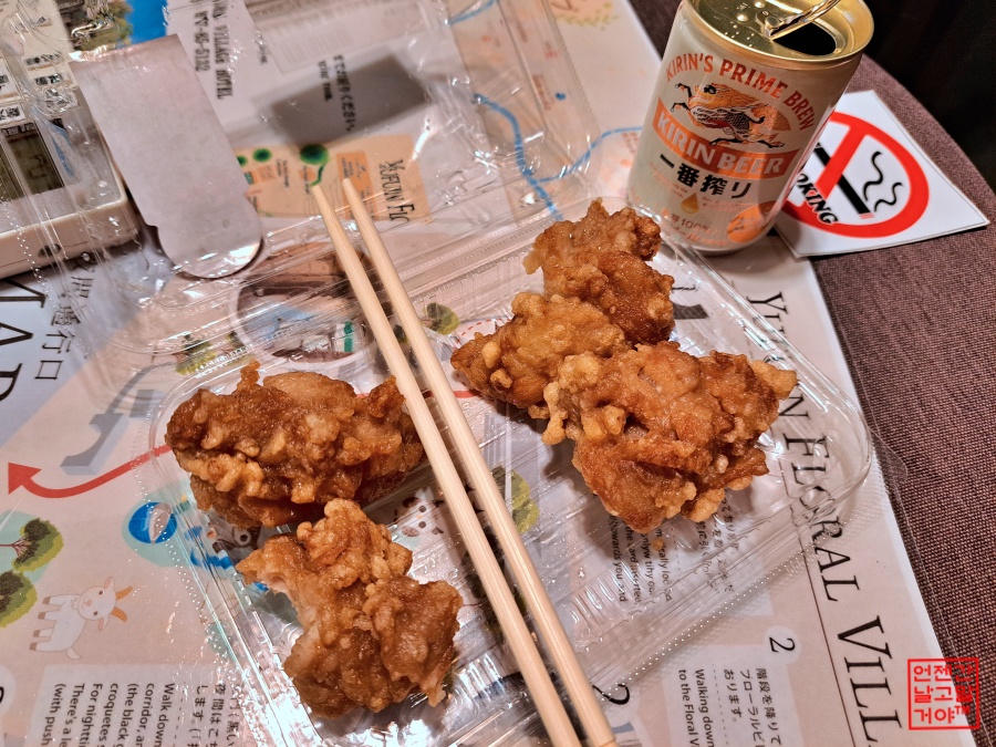 호텔방에서 가라아게 먹으며 맥주 마시며 유튜브 보며~ 마무리했습니다.
