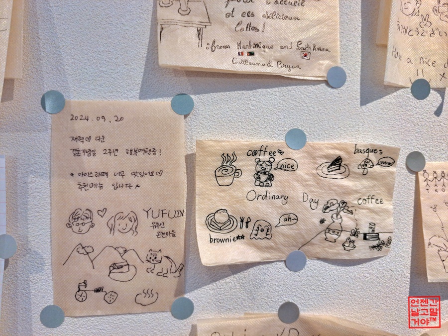 커피를 기다리는 동안 다른 사람들의 낙서를 보며 재밌게 시간을 보냈습니다.