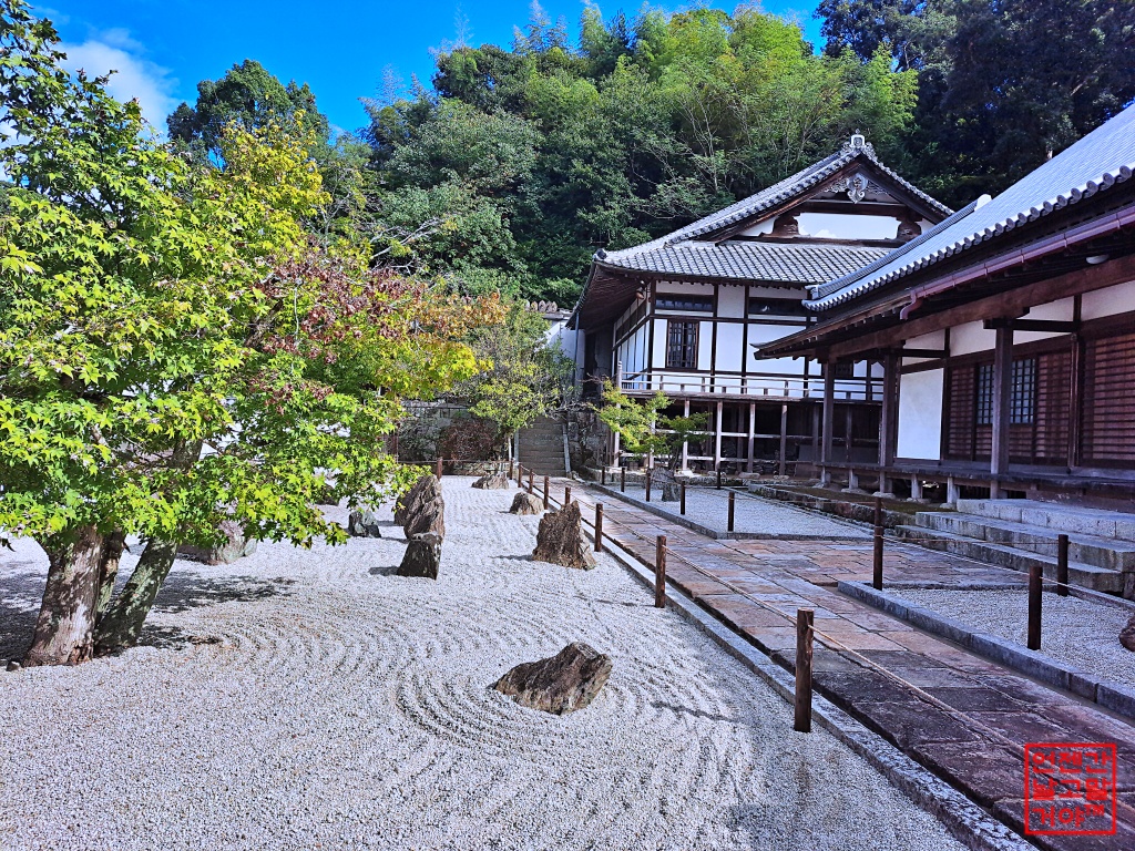 고묘젠지(광명선사) 안에는 아름다운 가꾸어진 모래정원이 있습니다.