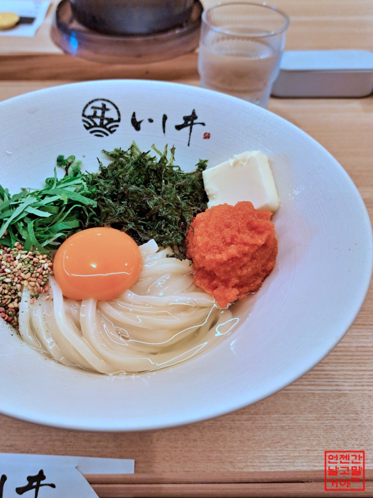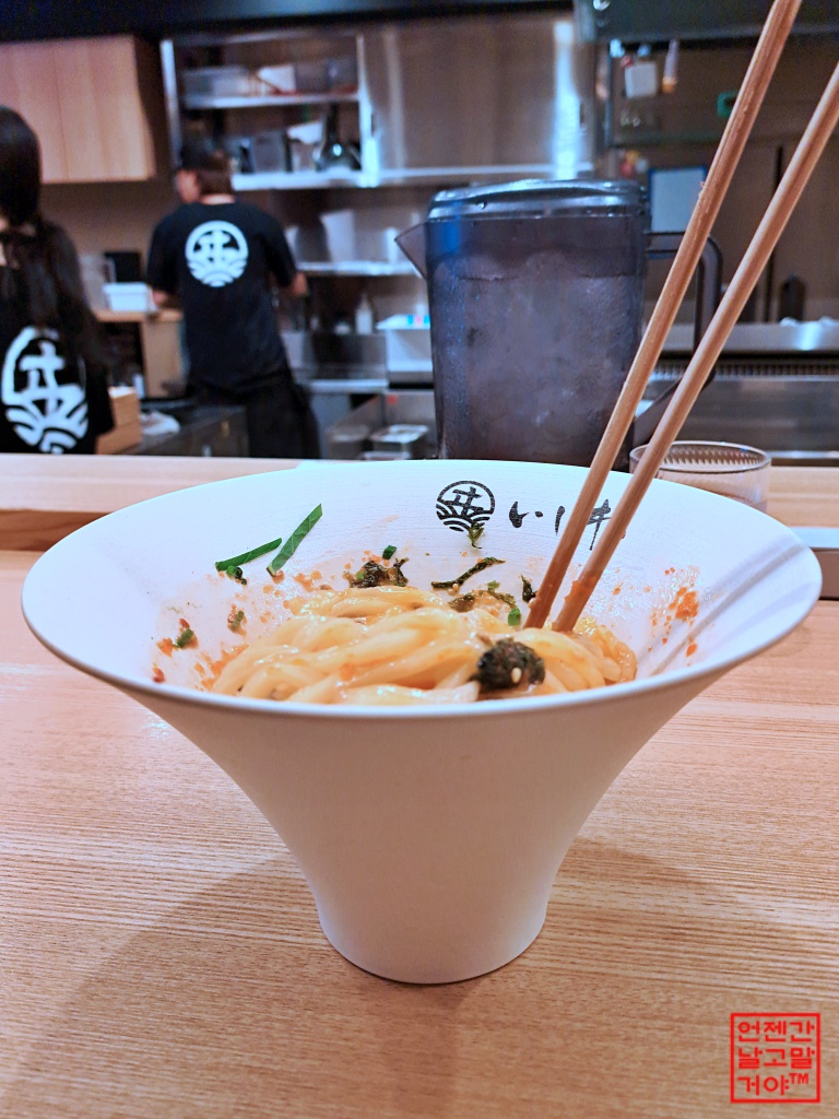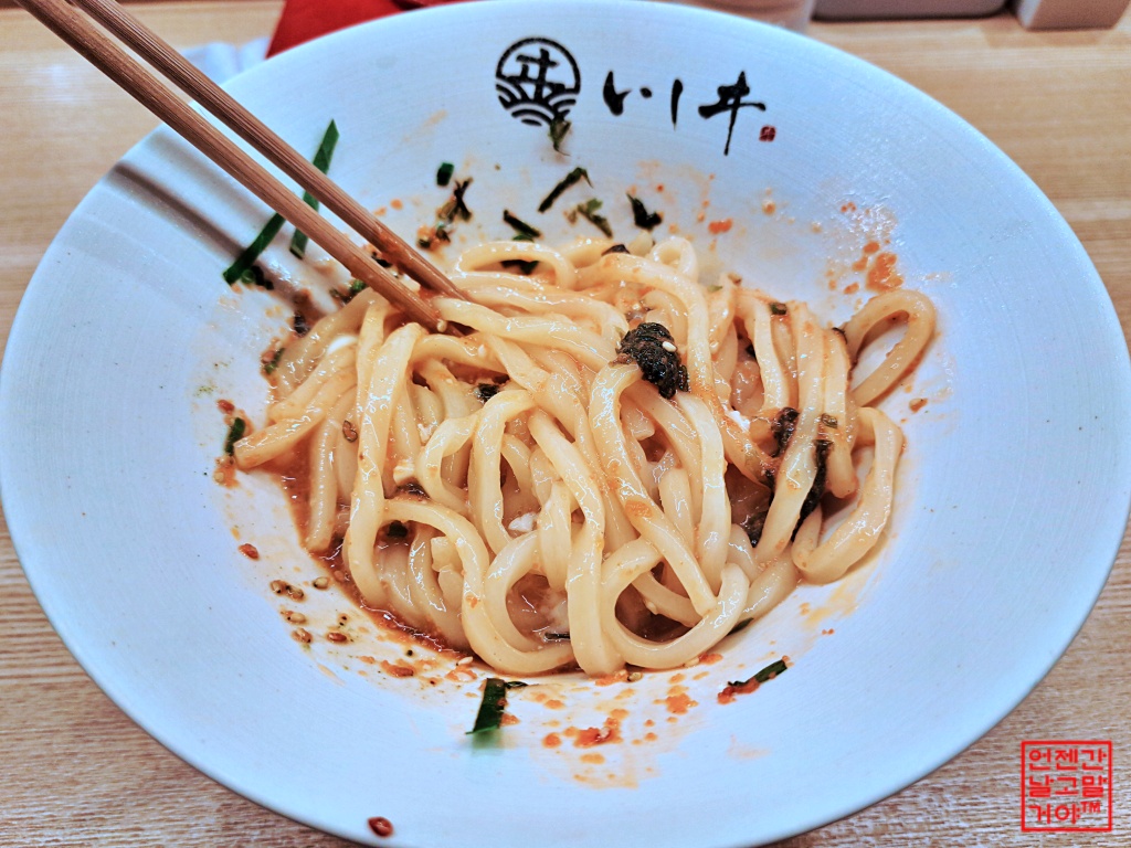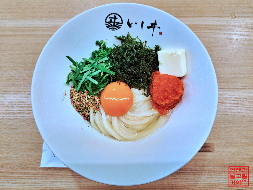 후쿠오카의 질 좋은 명란젓을 올린 '비빔우동'이 유명한 '멘야이시이'인데요.