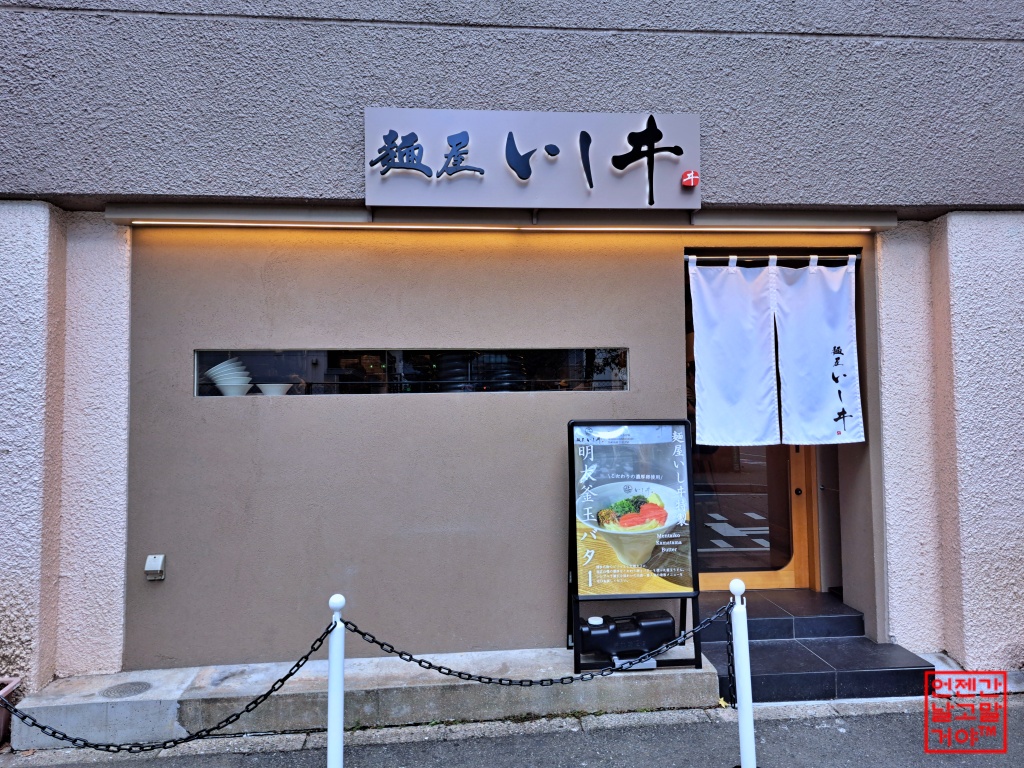 호텔들 빌딩 사이에 건물 1층에 '멘야이시이'가 있습니다.