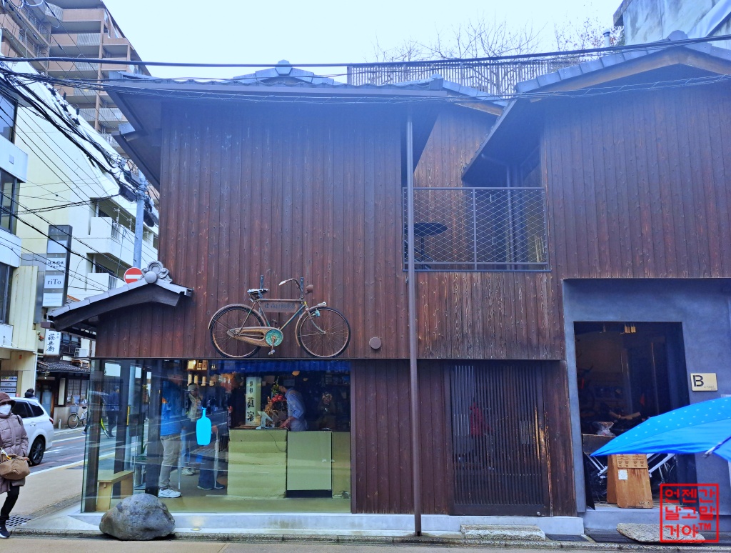 멀리서보면 자전거가 매달린 목조 건물이 눈에 띄는데 긴가 민가 했다가