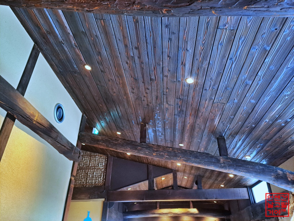 멋진 서까래 아래가 창가자리인데 손님들로 꽉 차서 사진을 찍지 못했어요.