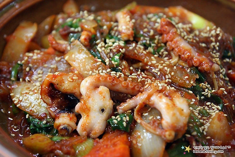 1층은 주차장이고 식당은 2층에 있더군요. 평일 낮에 갔더니만 그나마 가게는 빈자리가 한두 곳 보일 정도로 한가하더군요. 다행입니다. 카운터에는 팔순이 넘어 보이시는 할머니가 한 분 보이시던데, 그 분이 여기 주인장이신가 보더라고요. 제 외할머니의 고향이 이곳 진주/사천 쪽이라 쓰시는 말투가 꼭 외할머니 같아 친근감이 느껴지더군요. 아무쪼록 할매, 건강하게 오래오래 사이소~